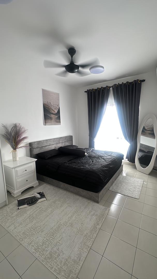 This Corner unit has 4 bedroom with 5 beds and 3 folded beds located in Taman Putra, Bukit Rahman Putra Sg Buloh. This housing area has 24-hour security guard patrolling the area and manning the 2 gates A and B. This house is cozy and clean that gives you and family a peaceful mind to rest. it is a Corner lot unit parking for card is not an issue. This taman is new and on reserved Malay land so most of the residents are Malay. Surau is a walking distance from the unit.