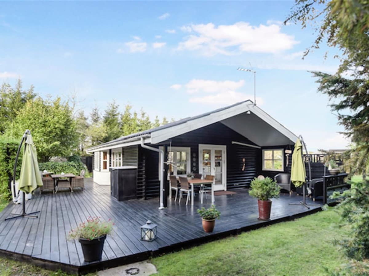 The perfect holiday home for peace and relaxation This holiday home is ideal for those seeking a break from everyday stress. A place to relax all year round. The holiday home offers: -Sauna -Hot tub -Outdoor shower with hot and cold water -Private and secluded grounds with unique outdoor areas The beach is only 1.2 km away. Comfort and coziness: -Wood-burning stove and air conditioning -Outdoor kitchen -Pizza oven and grill -5G WiFi and Chromecast -Bicycles available for free use