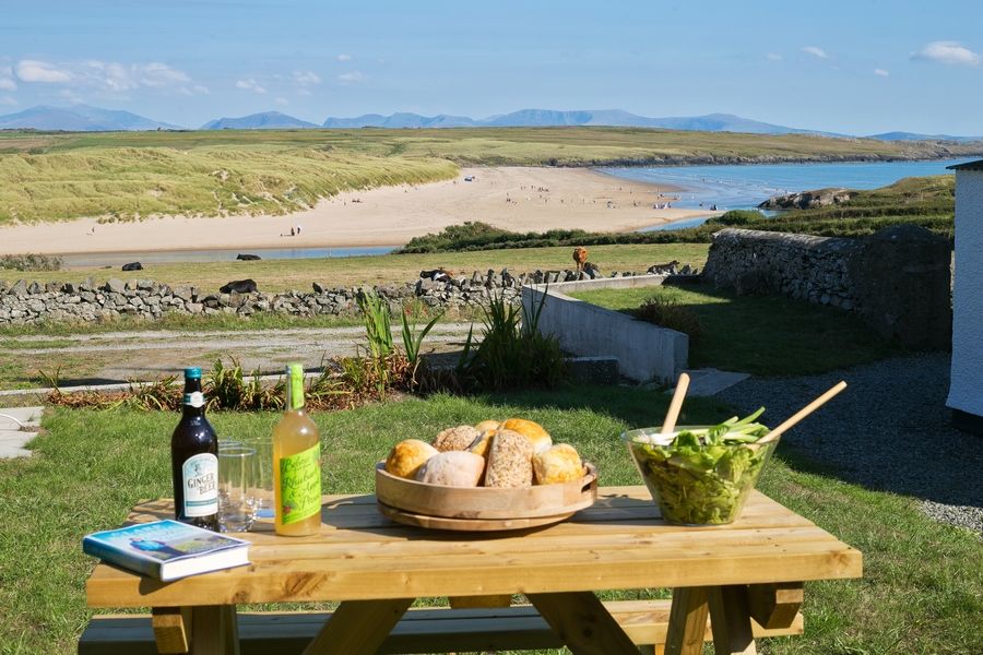 This cosy one bedroom cabin , handcrafted from Welsh larch, is nestled in a peaceful and quiet location on the edge of Newborough forest. A rejuvenating walk along the Anglesey Coastal Path gets you to Traeth Llanddwyn Beach, where you can take a dip or a paddle or walk around Llanddwyn Island nature reserve, before returning for a snug evening in front of the wood burner. Luxuriate in a super king size bed, and wake up to views of Snowdonia through the picture windows.