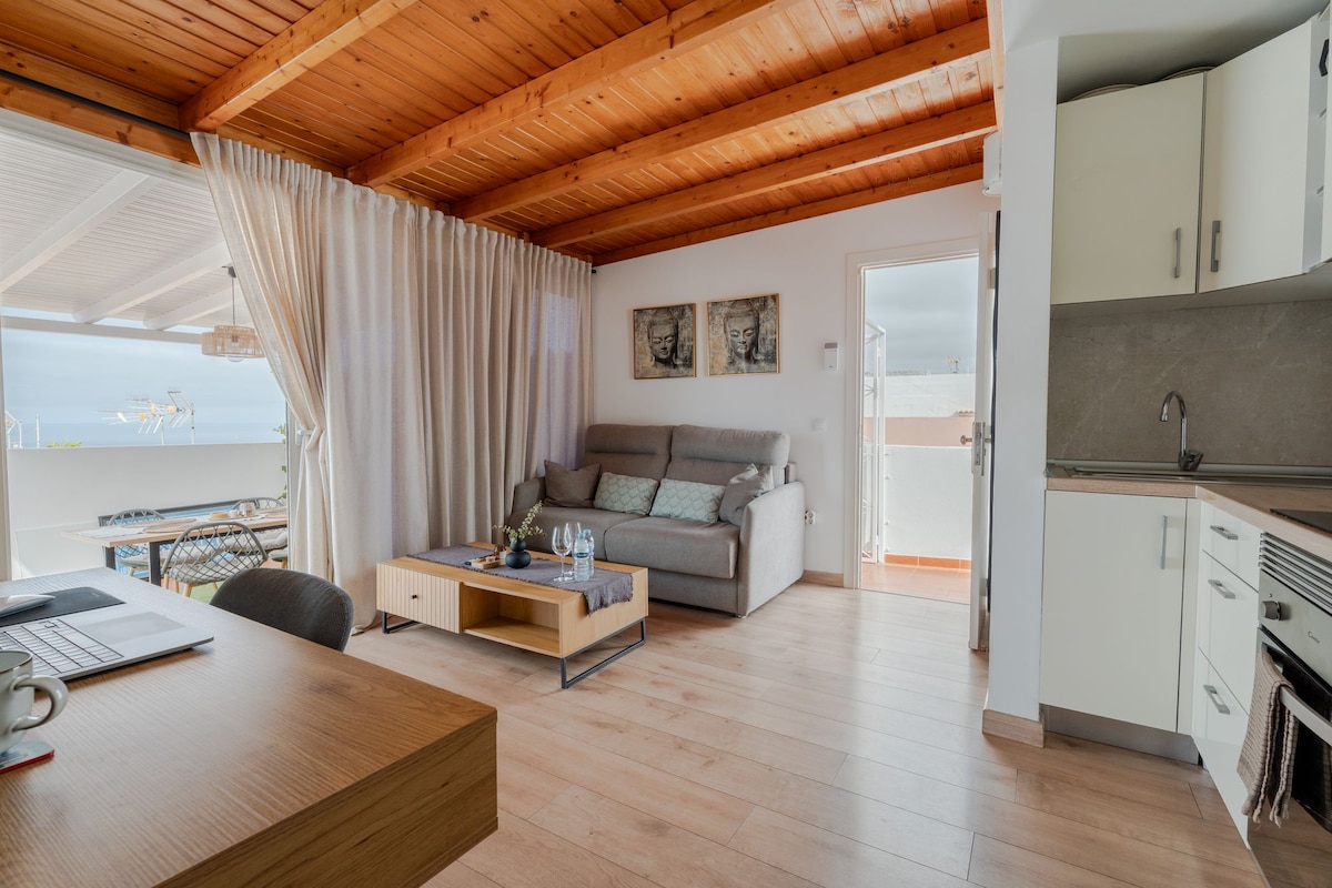 Apartment with WiFi in downtown Los Cristianos, one bedroom, sleeps 3, terrace with panoramic view, 10 min from bus stop, 10 min from beach (Las Vistas), 650 m from the exact center of the city, supermarket within walking distance, restaurants and bars, a 24-hour store always open for your needs. We provide information on cheap car rentals, excursions and places to visit. Perched on the volcanic hill Chica, not suitable for the elderly (no elevator).