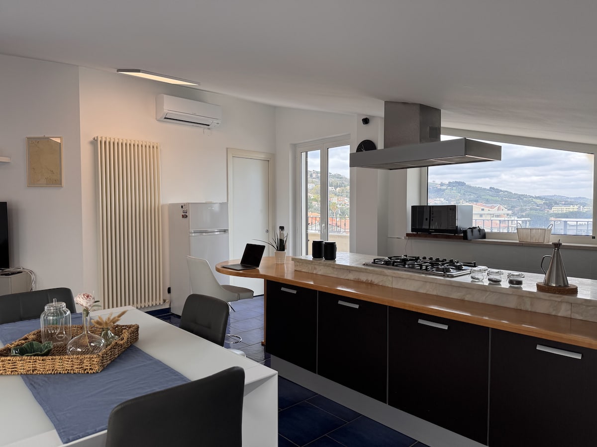 This unique space has its own style, beautiful sea view on one side, view of Vasto on the other, WiFi, air conditioning, microwave, dishwasher, washing machine, large parking lot, parking space in the garage, 55-inch surround TV, romantic terrace, large sofa, 50 meters from the beach, 10 meters from the bike path, elevator, quiet environment, a bright house ideal for the sea and relaxation. LUX DOMUS!
