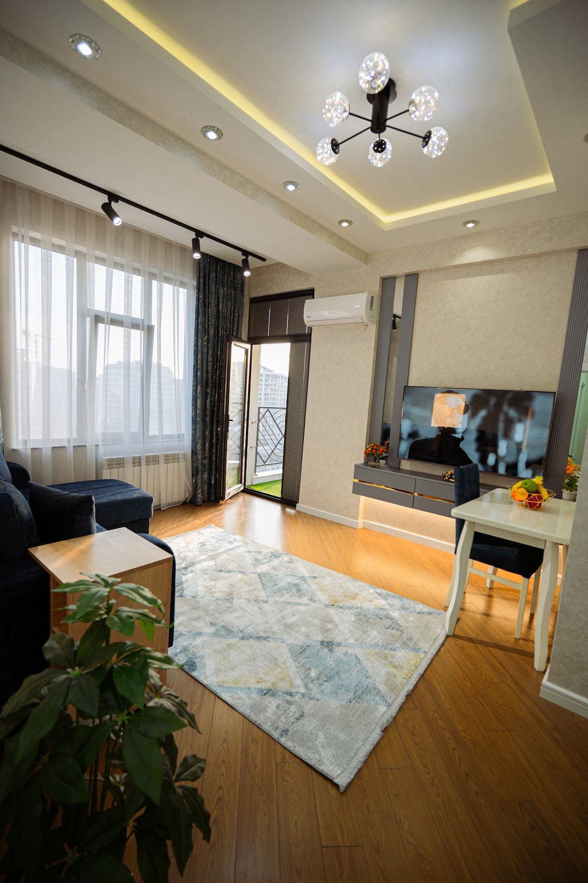 Relax with the family at this peaceful place to stay. It's cozy, sunny and modern apartment, which is on the eighth floor in newly built residential complex, with balcony,big yard,playground and tons of restaurants&cafe&shopping. 🏡Apt is fully equipped with all amenities • Wi-Fi • Flat Screen TV • Kitchen with fridge/freezer, coffee machine,oven,blender,tea,coffee,sugar etc. • Full bathroom with shower, shampoos, washing machine • Iron and Hair dryer • Air-conditioner/Heating system ❌NO PETS