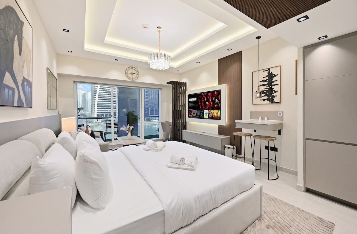 ✨ Newly renovated & furnished (Oct ’25) 🤖 Alexa-powered Smart Home 🏝️ Lake Facing 💻 Workspace • WiFi 🛁 Modern bathroom • Premium kitchen 🅿️ Free parking • 1-min to DMCC Metro 🏋️ Gym access • 👮♂️ 24/7 Security Perfect for travelers seeking luxury, comfort, and smart-home convenience near JBR / Marina Beach & Dubai Marina. Walk to New Year’s Eve fireworks and top attractions!