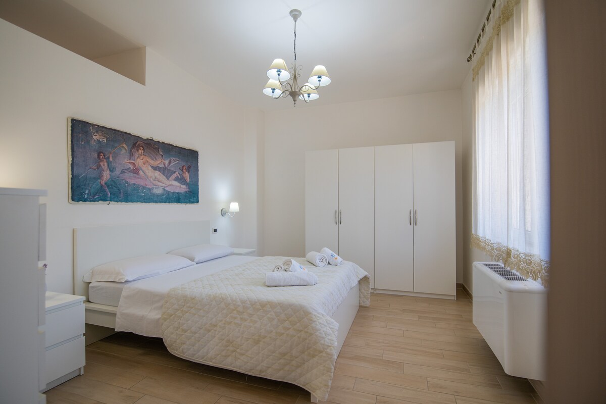 Welcome to our beautiful Domus Selene, located in the beating heart of Pompeii, a short walk from the famous Sanctuary and fascinating archaeological excavations. The apartment can comfortably accommodate up to 6 people. The spaces are elegant and carefully designed, combining modern comforts and a welcoming design. The house is just a few minutes' walk from the train station and the main tourist attractions, making it the ideal base for exploring Naples and its surroundings.