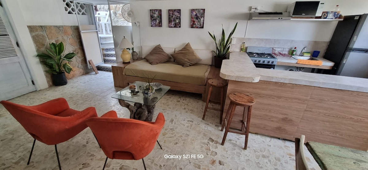 Relájate con tu pareja en nuestra Suite 3 Sunset, donde la tranquilidad se respira desde las alturas. 4ª noche gratis en temporada regular. Pregunta! La cocina y barra que se encuentran en el pasillo (Apartado de Fotos COCINA) son amenidades compartidas entre los huéspedes de nuestras 3 Suites!