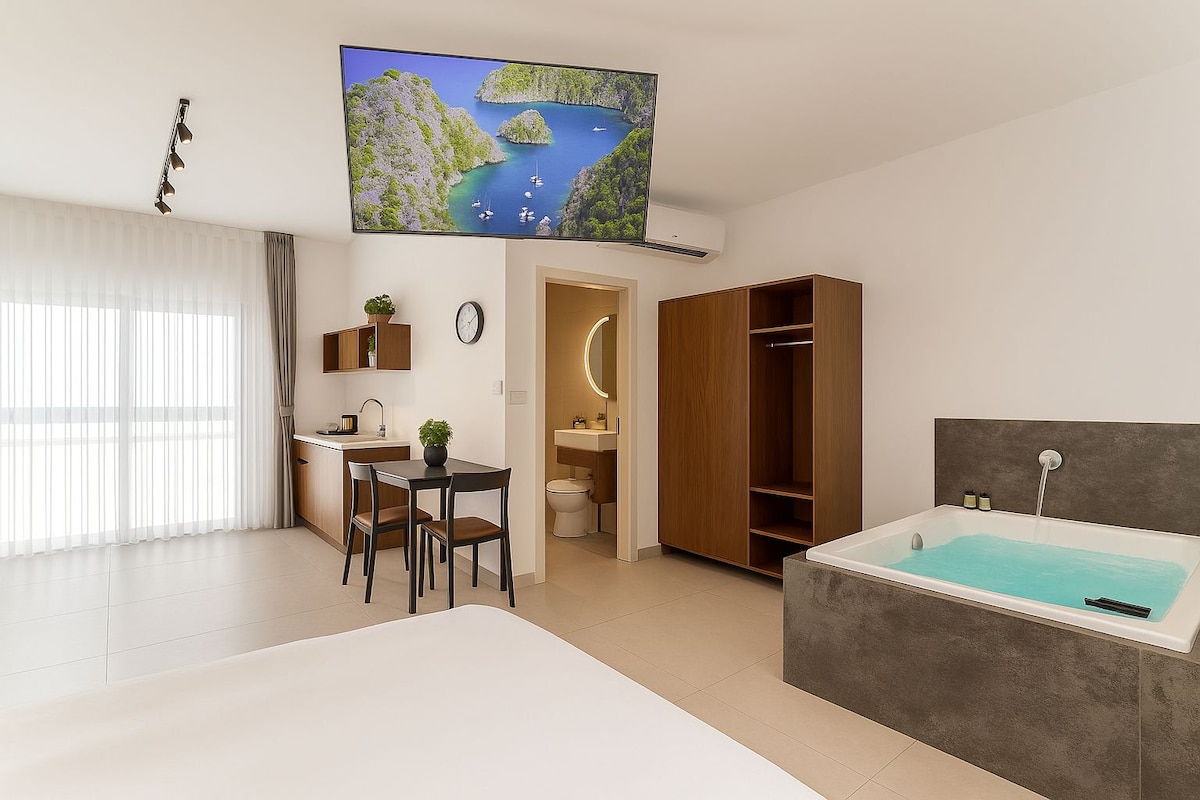במיקום אסטרטגי ובמרחק הליכה קצר מכל מוקדי העניין: הים, מסעדות מעולות, חנויות, וטיילת שוקקת. הדירה מאובזרת למקסימום נוחות! ✔️ מטבח חדש ומעוצב בקפידה ✔️ חדר שינה עם מיטת קינג סייז מפנקת וטלוויזיית 65 אינץ׳ ✔️ חדר ארונות מרווח ✔️ סלון מרווח עם פינת ישיבה, פינת אוכל, מטבח חדיש עם מקרר, מיקרוגל, וכלי בישול איכותיים מה עוד מחכה לכם בדירה? ✔️ ספה נפתחת שמאפשרת אירוח של עוד אורחים ✔️ חיבור WiFi מהיר במיוחד ✔️ עיצוב מודרני, מזמין וחם חווית אירוח מושלמת במיקום מנצח.
