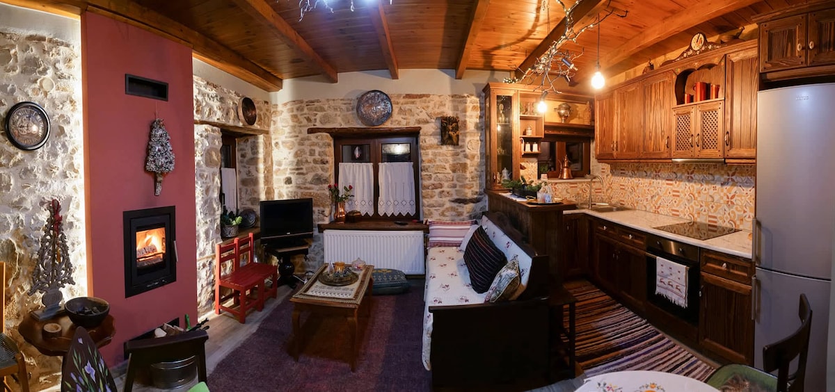 A small independent cottage on the mountainside, only 5 minutes from the town of Karpenissi and a 15 minute drive from the ski center. Our cozy guesthouse on the foothills of Velouhi mountain, has been recently renovated and can host 2 to 6 people comfortably. The 70sq m open space can be ideal for a couple, a family of 3 or 4 but even for a group of 5 to 6 friends, offering all the comforts for an enjoyable stay.