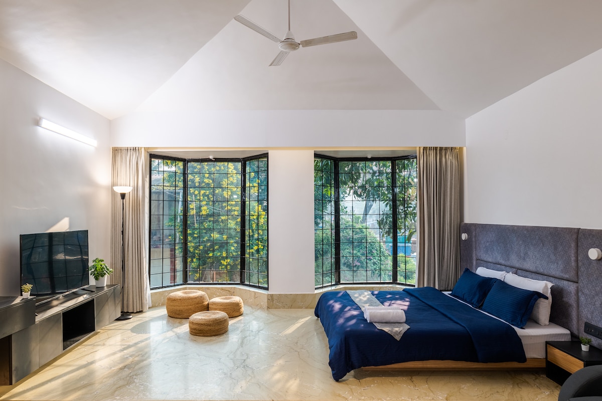 Chic 1BHK | Palm View | WFH | Huge Balcony