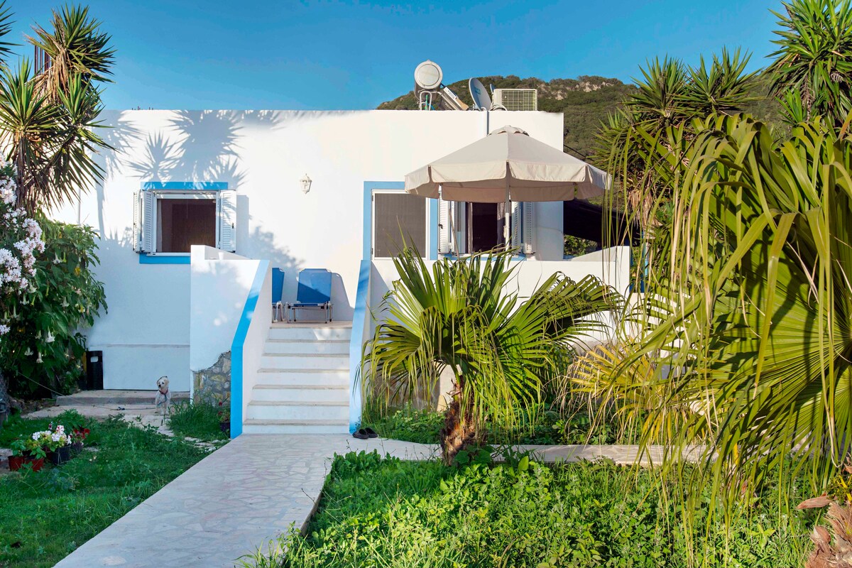 Top floor apartment with panoramic sea views over Ag. Gordios! Our apartment offers two balconies with sea view, fully equipped kitchen, free fast wifi and a big colorful garden. Ideal for couples or families with older kids looking for relaxation, peace and quiet. Take a deep breath as you feel the sea breeze on your face, relax reading you book on the balcony, enjoy sunbathing in our garden, listen to the birds' songs and the sea waves. A holiday to remember!