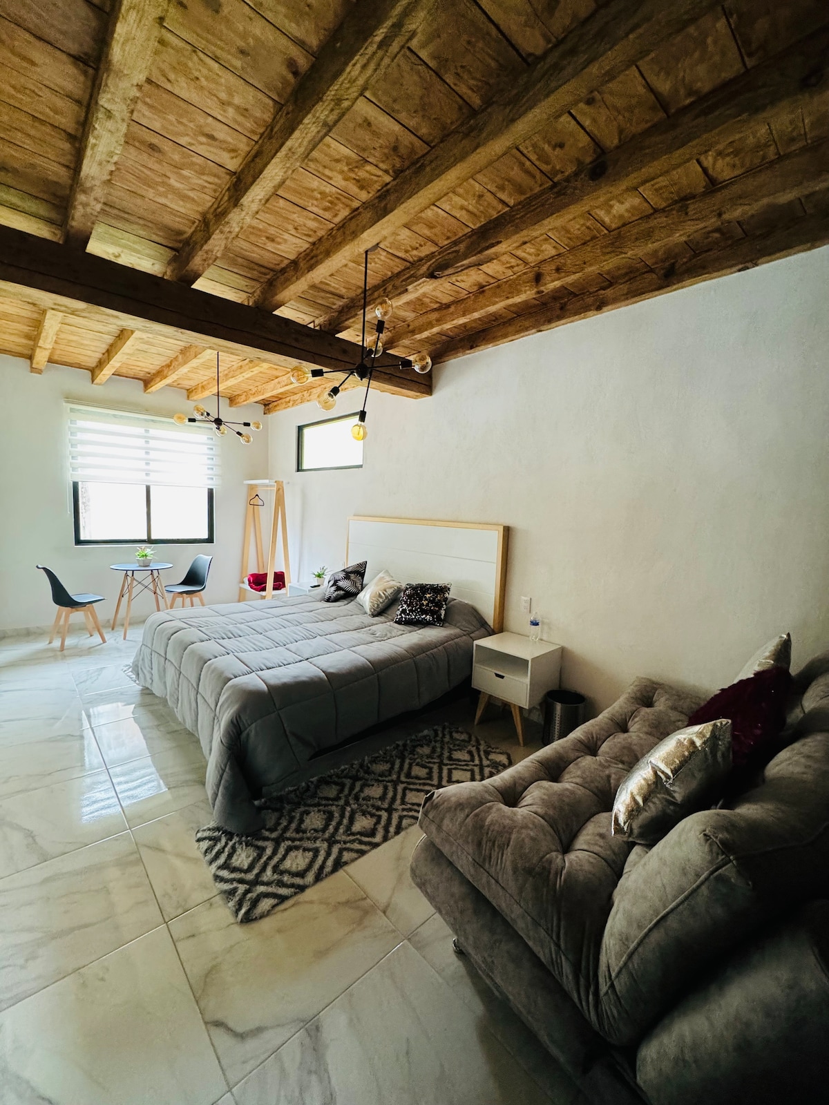 Enjoy a unique stay in our comfortable open-concept loft with panoramic views of Toluca. Enjoy 24/7 video surveillance and an unbeatable location—just five blocks from the Government Palace and next to Plaza Molino Shopping Center. It’s the perfect space to work, relax, or explore downtown Toluca, with the convenience of having Plaza Molino right in the building—featuring a Starbucks, cinema, restaurants, Oxxo, Smart Fit gym, and more.