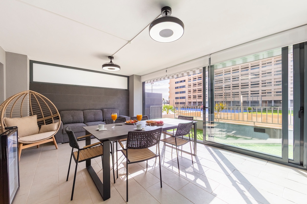 Spectacular penthouse with 100 meters of its own terrace, charmingly decorated and including a small swimming pool. Located in the best residential development in Almería, with a swimming pool, gym, and paddle tennis court in the common areas. Spectacular views and located 300 meters from the beach. The apartment has its own parking space, two bedrooms, a living room, kitchen, bathroom, and air conditioning in all rooms. It is perfectly equipped and has modern decoration.
