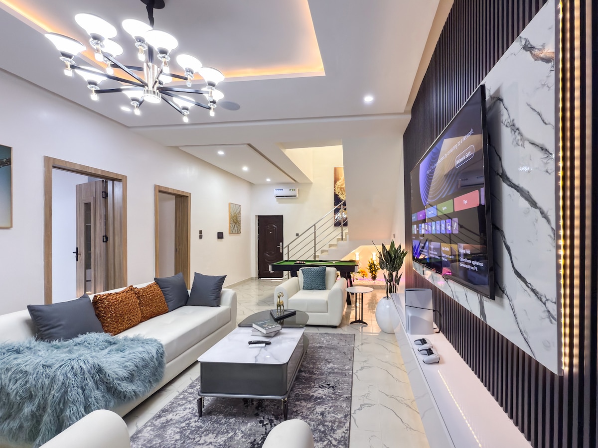 Welcome to Maison Vaucluse, Thoughtfully styled with high-end finishes and sophisticated interiors, the home offers generous living spaces that flow effortlessly, perfect for families, friends, or special getaways. Maison Vaucluse offers a seamless blend of privacy, style, and convenience. PS5, Snooker, Ping Pong. This home is more than a place to stay, it’s a destination in itself. This property is located in Lekki Palm City Estate. We also offer an in-house Sous Chef for an affordable fee.