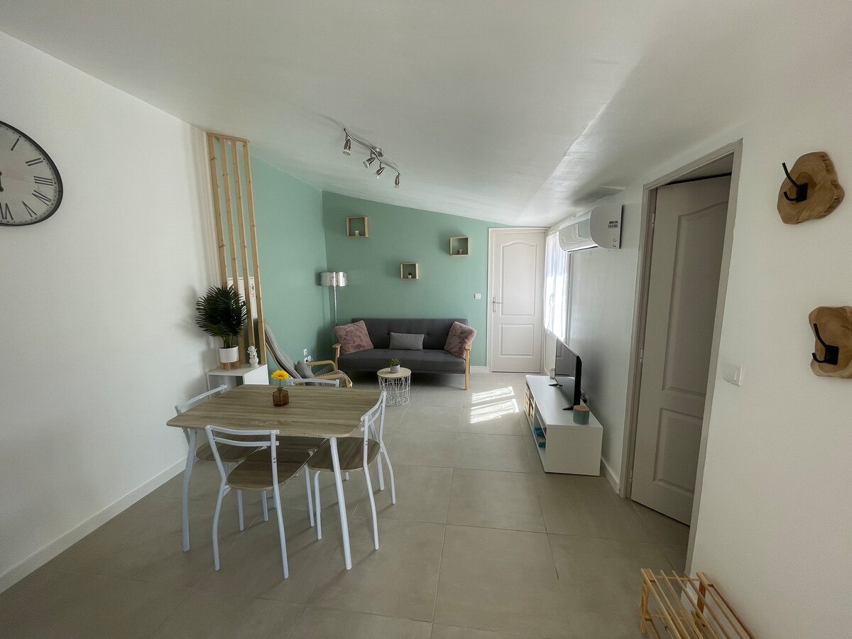 Enjoy a stylish and peaceful home! The apartment "La Provence vous attend - 1er étage" is located on a quiet street in the old center, a 5-minute walk from the city center on the 1st floor of a small 3-story building (no elevator). Completely renovated and newly equipped in 2023, it is classified 3* in the Gîtes de France. Elegantly furnished, it has been designed to accommodate up to 4 people. The apartment has a fiber optic internet connection and a TV Box.
