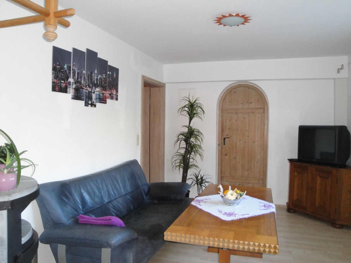 Our apartment is suitable for home office. It is in a quiet and sunny location. The entrance is separate and leads via the staircase to the upper floor. The apartment is equipped with a kitchenette, a cozy single bed (1 x 2 meters) and a cozy seating area that can be used as a double bed when folded out, as well as a dining area and TV. The bathroom, as a separate room, is only accessible to you. Starting point for excursions. Parking, small seating area in the garden under the trees.