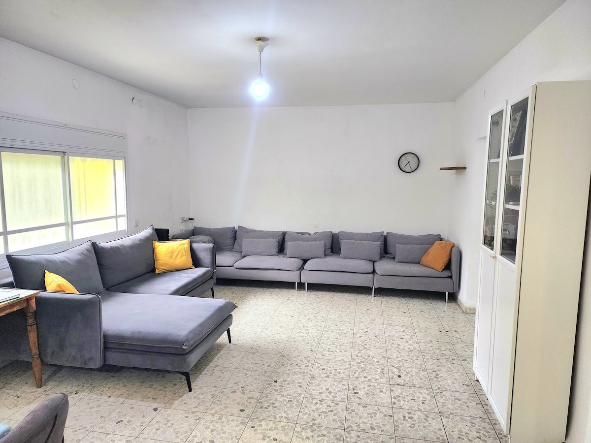 This 270m² villa features 2 connected flats(4 bedrooms,7 beds,3 bathrooms) with 3 large salons – perfect for families. Enjoy full privacy in a peaceful area just 4 min to Irbid Mall and city center,and 8 min to Yarmouk University. Highlights: Ultra-convenient – Arabella Mall, irbid city center & Al Hasan Stadium all within 5-8 min walk Serene escape– Quiet neighborhood with cooling breezes, yet steps from city life Spotless & spacious – High ceilings, natural light, and room to relax. Fast Wifi