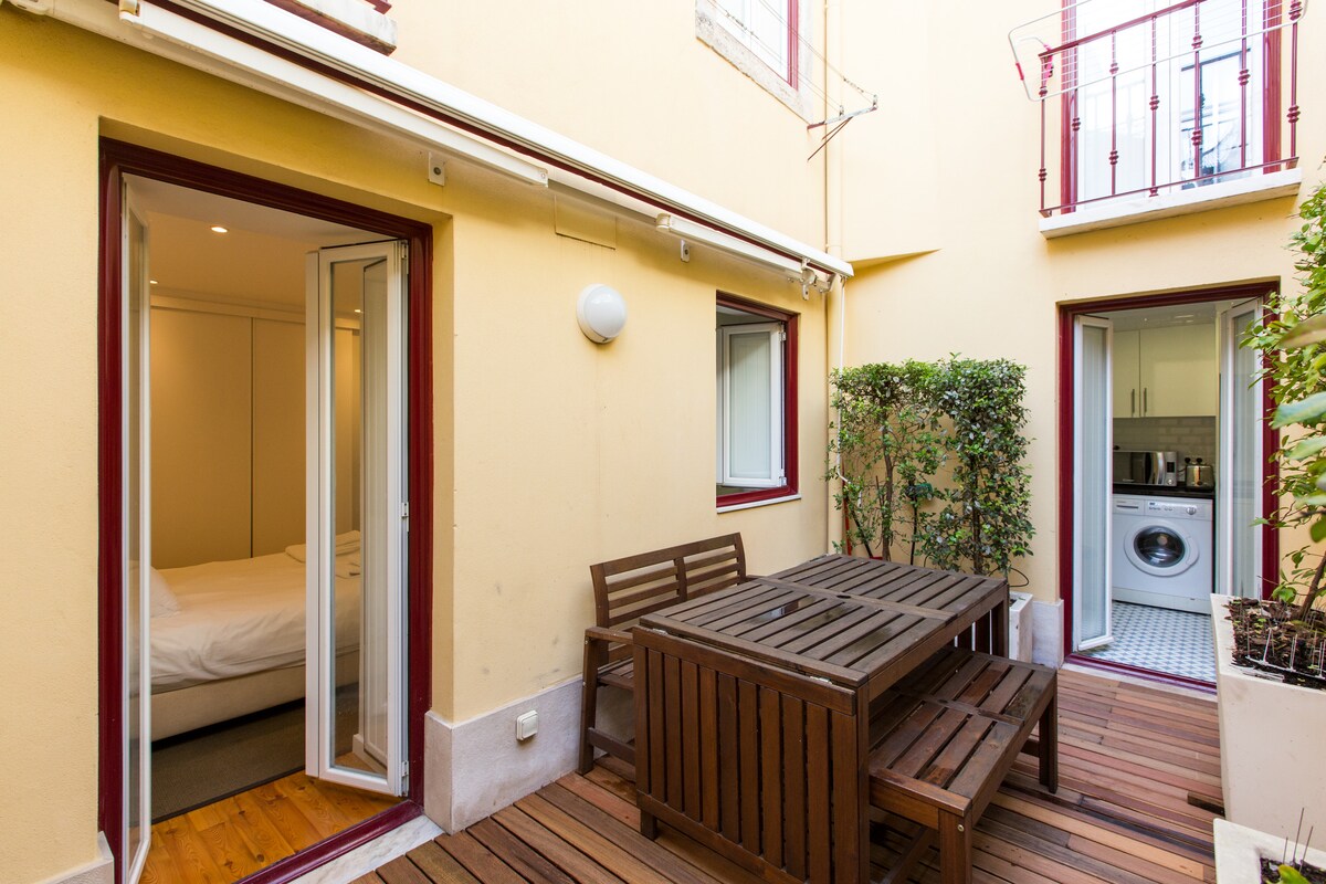 Stylish, spacious, and central studio apartment with: 🛌 Best sleep quality : comfortable king bed, luxury pillows and soft white linen 🚿 Very large marble bathroom with quality towels and free toiletries ❄️ A/C 👗 Washer & dryer 🛗 Elevator 👨🏻🍳 Kitchen 🍷 Vibrant area with many restaurants, shops and cafes 📍 Walking distance to Chiado, Bairro Alto & Cais do Sodré 🚋 Directly on Tram 28 📶 Wi-Fi 📺 Smart TV with 200+ HD Channels 🧼 Squeaky clean 🛒 Supermarket is 1 minute away