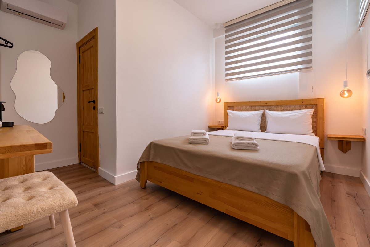 My house is an old town house with 2 floors for up to 5 people with its 2 bedrooms, 1 living room, 1 kitchen, 2 bathrooms, 1 garden and 1 terrace. So you can feel at home with family and friends. In the house you can find everything you need. You can reach the upstairs bedroom from the stairs in the garden. I designed the house myself. It has a historical look with rustic wood and comfortable and cosy beds. There are air conditions in both bedrooms and living room with hot and cold options.