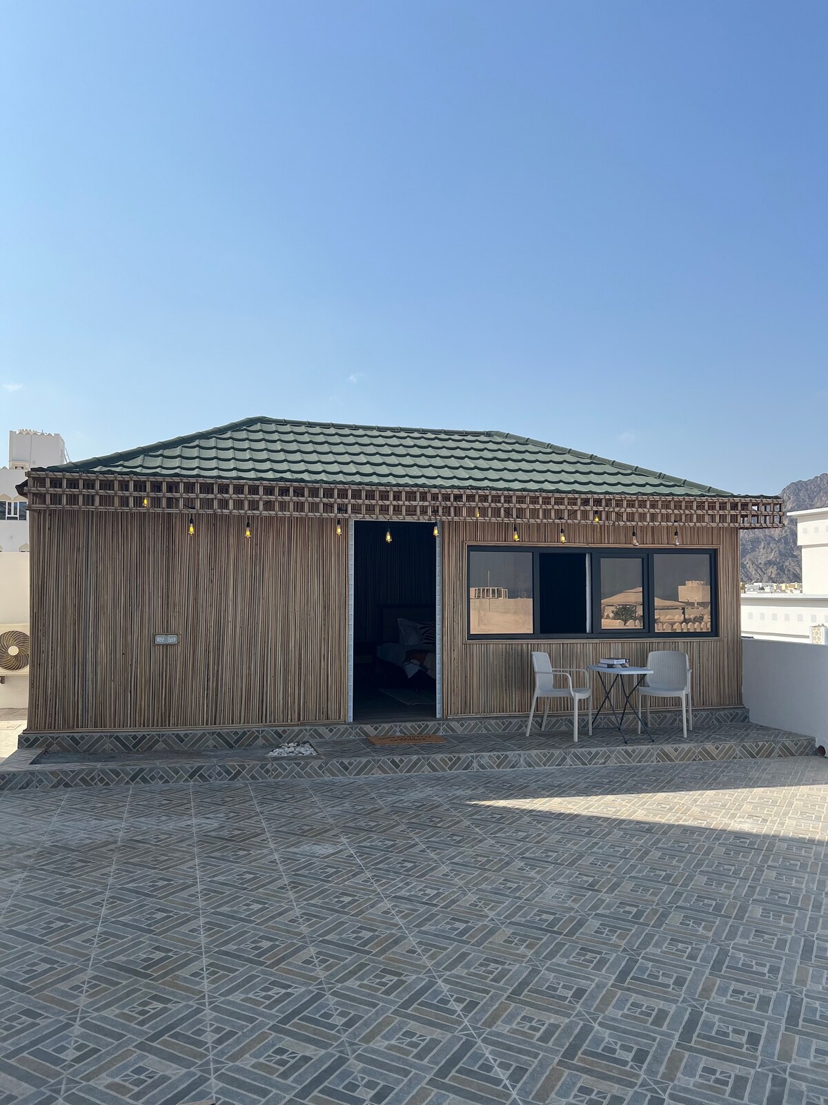 Stylish condo at the second floor of an Omani villa. Lovingly decorated and furnished, it is the perfect “home away from home”. Lounge amidst the flowers on the rooftop, enjoy your dinner there or simply take in the breathtaking view of the quiet, traditional village of Qantab! Enjoy a walk on the beach, dip into the cristal clear sea or soak in the sunshine, tranquility of mind is everywhere! If you want more action, easily a lot of sports activities, like diving, boot trips can be arranged.