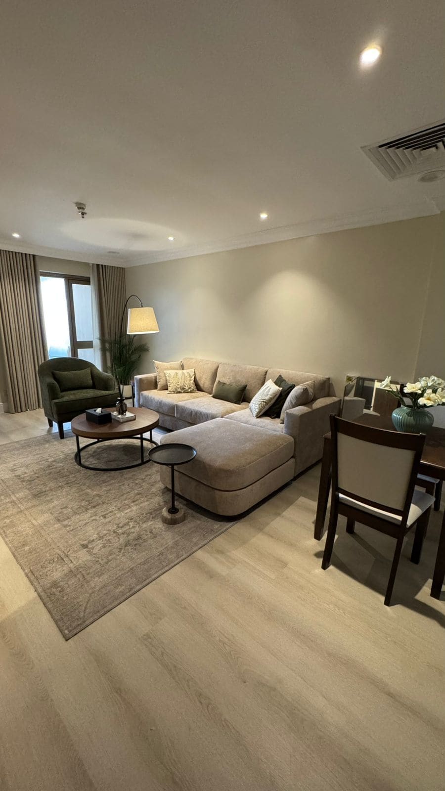 comfortable apartment located in the Al Khaleej neighborhood The apartment offers a calm and relaxing atmosphere with elegant décor and a spacious living area Features Private balcony for a pleasant and relaxing seating area Modern and elegant décor Spacious living area Fully equipped kitchen with all essential amenities Nearby Services Grocery store and laundry within 2 minutes Palm Corniche 3 minutes Fanateer Corniche 4 minutes Important Note No elevator available
