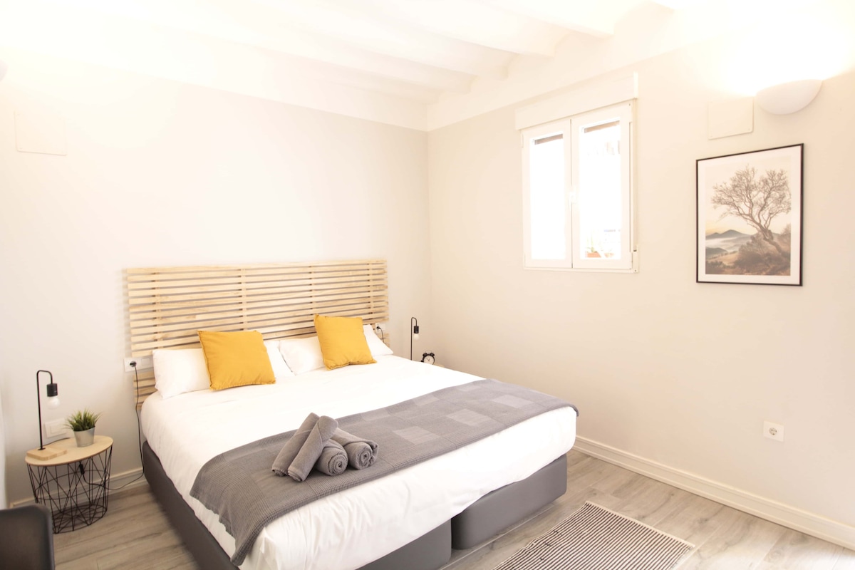 Spacious room with buffet breakfast included, with all its equipment in a recently renovated building, in an industrial style. All our rooms feature air conditioning/heating, plasma TV, fridge, towels and sheets, free Wi-Fi. With an unbeatable location, located in Alicante's old town, close to Postiguet beach, Esplanade, town hall, port and tourist attractions.