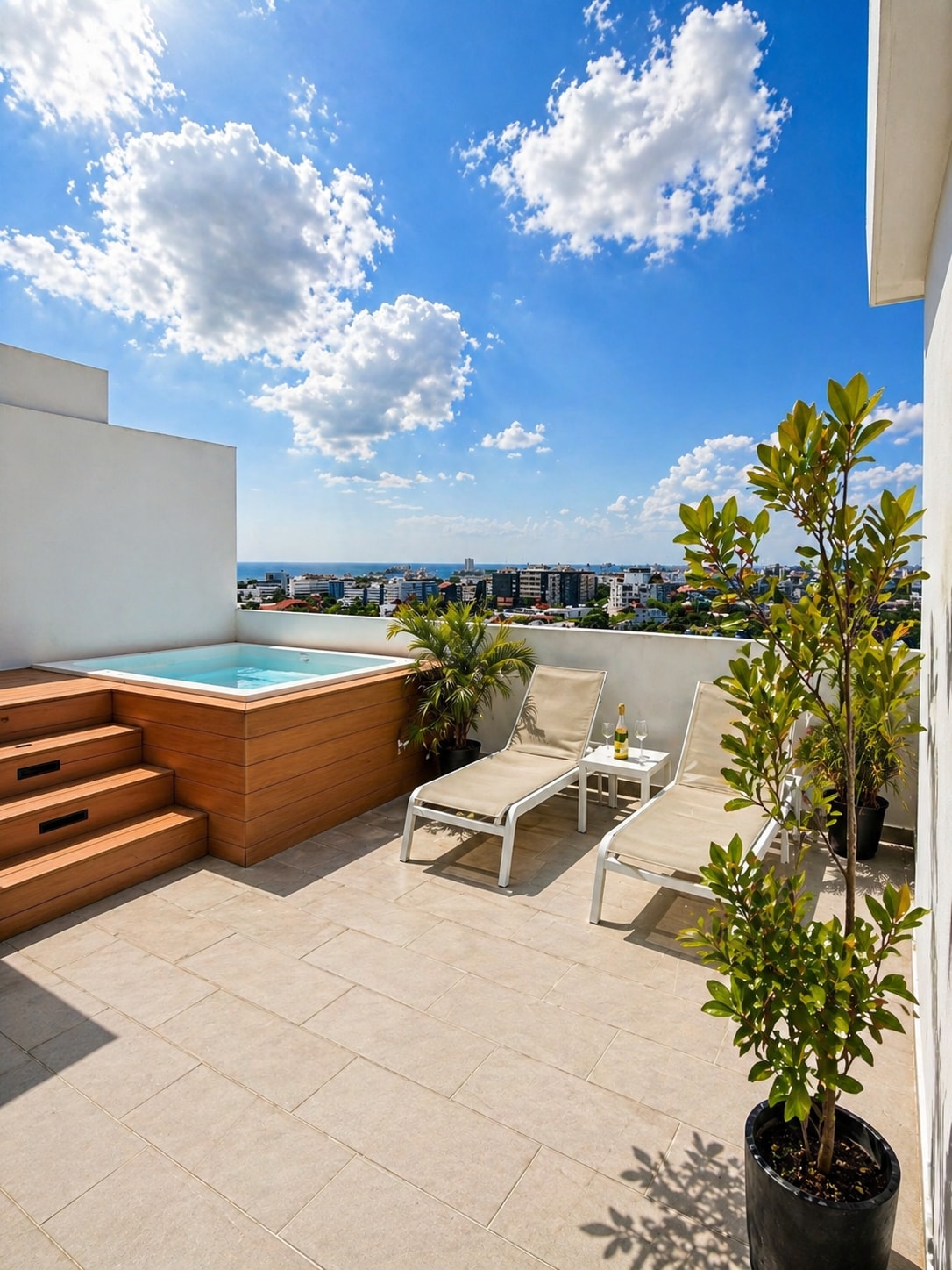 Vive una experiencia exclusiva con jacuzzi privado y terraza con vista al atardecer. Un espacio diseñado para el descanso, la privacidad y el confort absoluto. A 13 min de Zona Colonial, con cama King, aire acondicionado, WiFi de alta velocidad y área de trabajo. Disfruta cocina equipada, Smart TV y BBQ en un ambiente moderno y sofisticado. Incluye parqueo privado y ubicación céntrica. Ideal para escapadas de lujo o estancias prolongadas