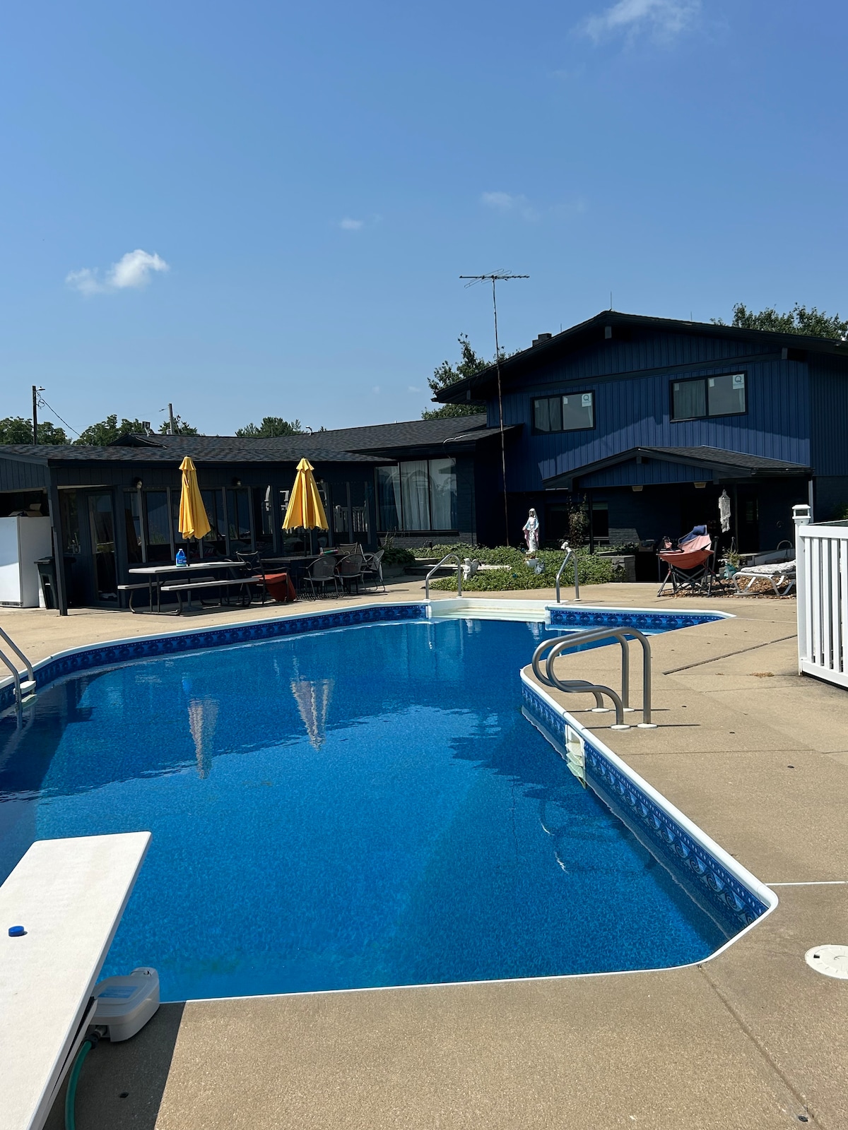 Soak in the hot tub or relax poolside at The Pool House! Its country setting is perfect for a relaxing stay, romantic getaway, business trip or spending time with your family. Enjoy a full kitchen, electric fireplace and spacious bedroom. *No parties allowed *No pets allowed *No smoking allowed *No photo shoots allowed Maximum of 5 guests We DO NOT have a TV, but you're welcome to bring one. We DO have WIFI. **Military discount is available. Please message us first by clicking "Contact host