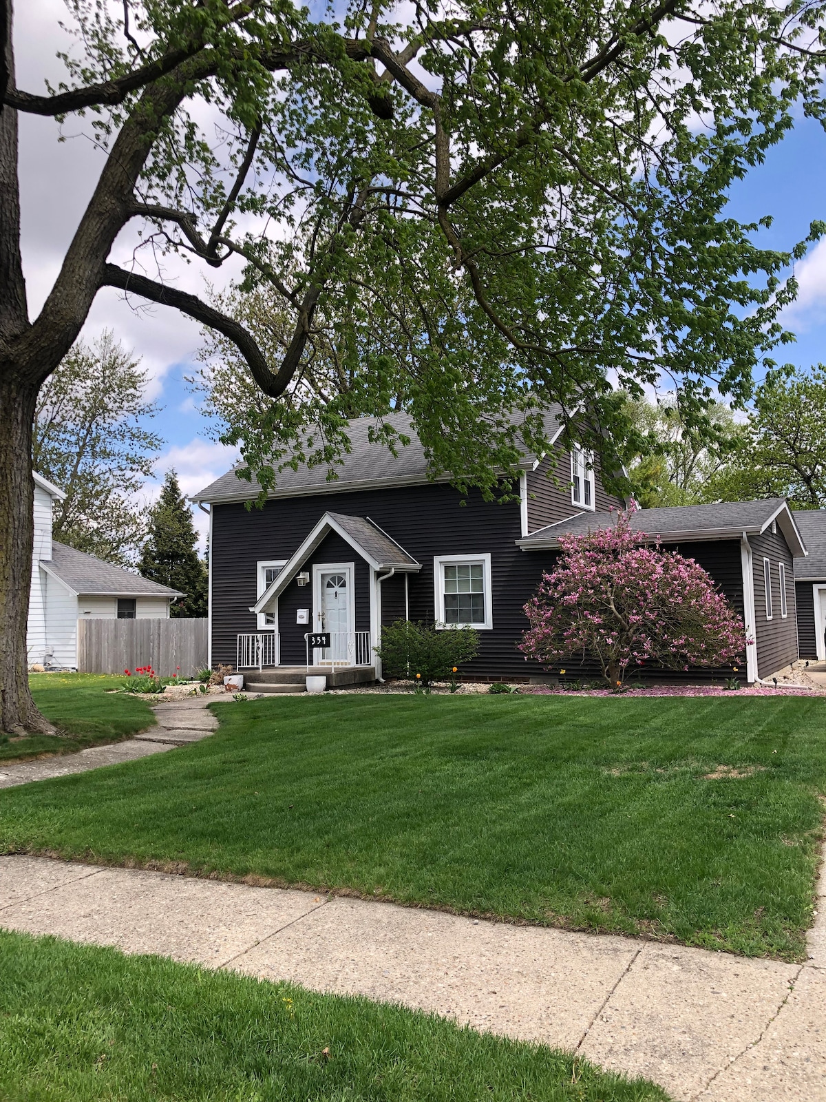 Enjoy privacy in this beautifully handcrafted cottage with arched ceilings. The cottage is 2 miles from downtown Goshen - a vibrant small town with restaurants and shops. It's 1 mile from Goshen College, 45 minutes from Notre Dame and 25 minutes from the Amish town of Shipshewana. The cottage is beside a fruit, nut and berry orchard and gardens. It's adjacent to a city bike trail that links to the Pumpkinvine nature/bike trail. It's close to a train crossing (with whistle) and a busy street.
