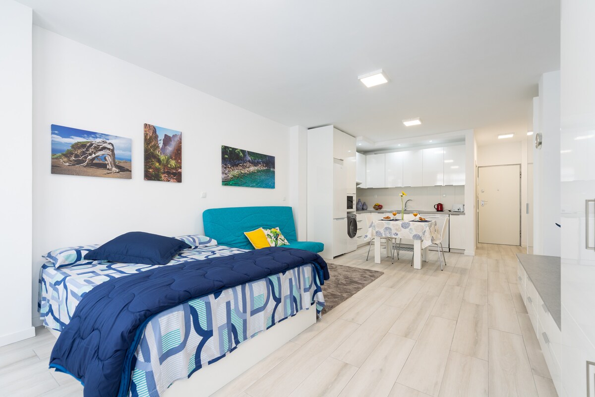 Holiday homes built in 2022, 200 metres from Las Canteras beach. Ideal for couples, families or groups of friends. Minimalist in style, with carefully selected space and furnishings. All holiday homes of this type have exterior views of Olof Palme Street or Viriato Street.