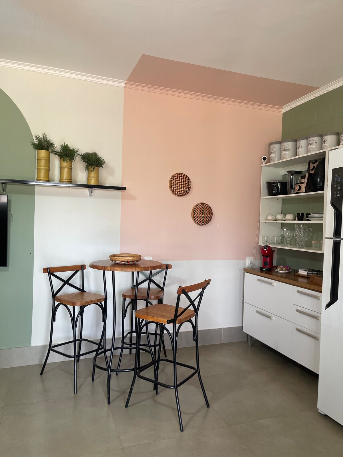 38m2 kitchenette, with double bed, closet, sofa, air-conditioning, smart TV, Wi-Fi, work desk, modern decor, integrated kitchen with refrigerator, microwave, induction stove, Nespresso coffee maker, water filter, cabinets, crockery and cutlery, electric iron and ironing board, hairdryer. High-speed internet, desk, ideal location for Home Office.