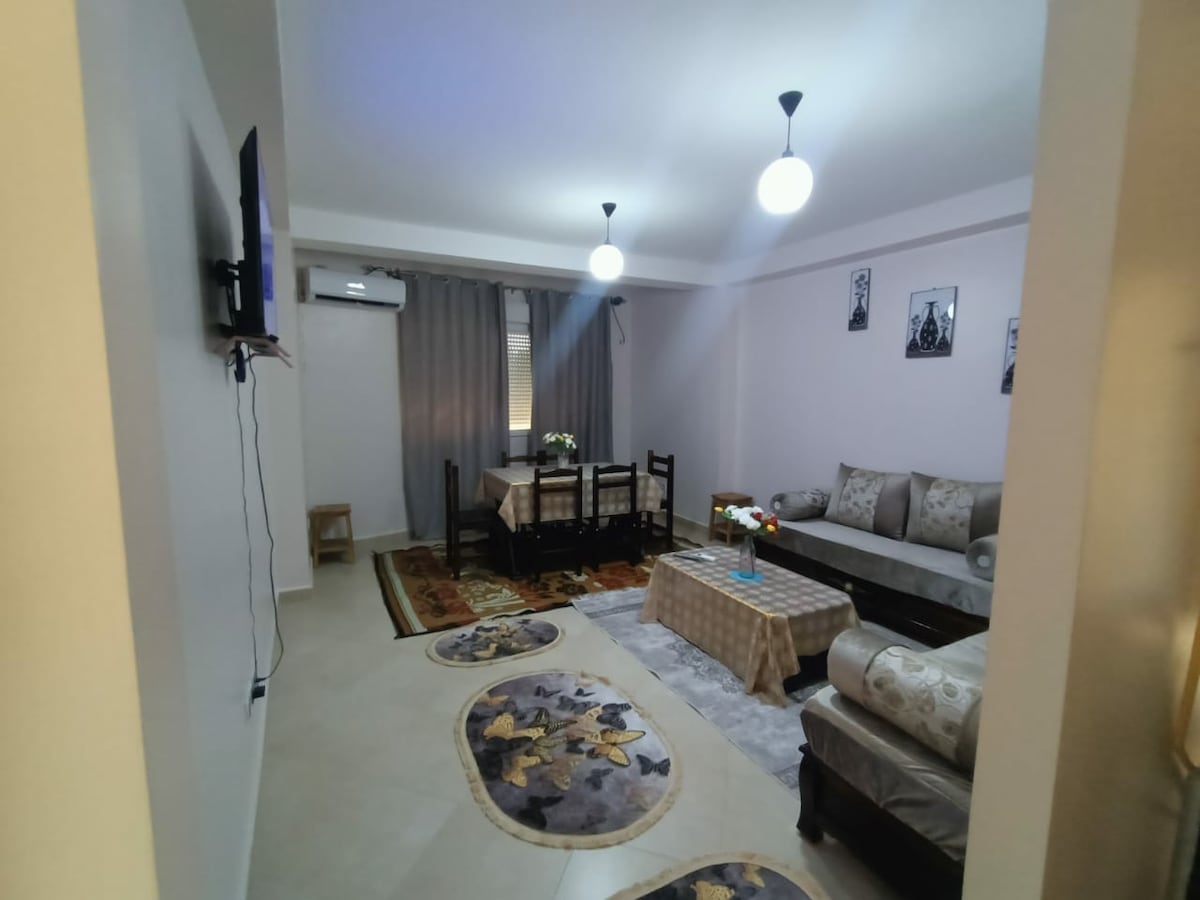 New accommodation on the west coast of Bejaia, just after Adrar Oufarnou, 10 km from the beaches of Boulimat/Saket and 7 km from downtown Bejaia. Shops nearby, car wash, mosque, restaurants. On the edge of RN24 Secure residence with permanent guard. - 5th floor with Elevators - 2 private parking spaces - 2 bedrooms + living room - 6 people - 6 beds - sheets/towels - equipped kitchen - stove - HD TV, WiFi, Netflix, YouTube - washing machine - fridge - microwave - air conditioning - Table ... €10 cleaning fee