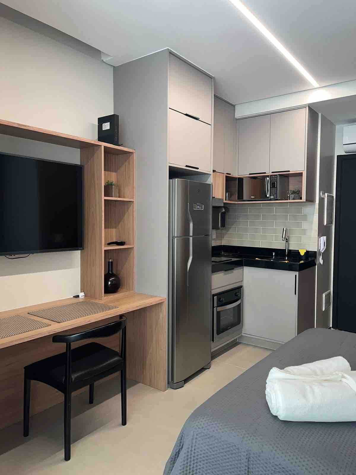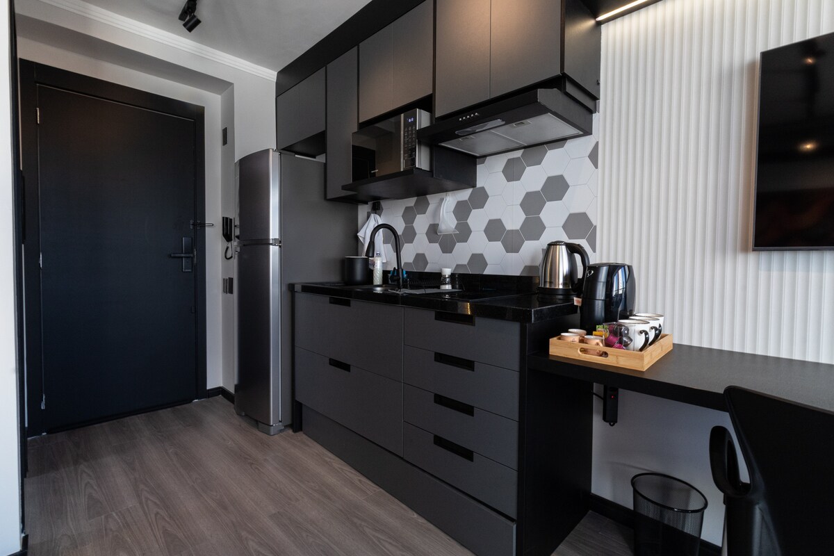 Studio 40011: 4 min from Allianz Park. Compact, modern, complete and comfortable studio in one of the most cultural regions of SP. 📍 Surrounded by cafes, restaurants and shows. Here the city pulsates ✨ Cozy bed, countertop, cabinet, air conditioning, TV, and kitchen equipped with sandwich maker, air fryer, coffee maker, stove, refrigerator. 🚿 Private bathroom and cozy lighting, with that "I want to stay a little longer" vibe Perfect for enjoying, resting or working. Book now!