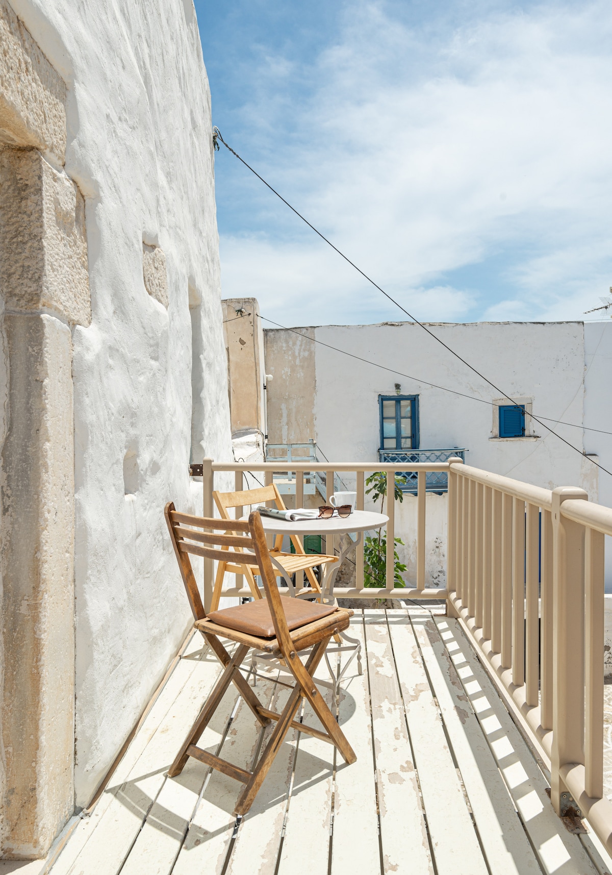 La struttura, piccola e graziosa, è situata in una zona centralissima ma pedonale e tranquilla della splendida Chora; occupa il primo piano di un edificio tradizionale, sopra la rinomata gelateria italiana "Lo Zio” e a pochi metri da taverne, bar e locali tipici. Fermate dell’autobus e imbocchi dei principali sentieri per le spiagge distano pochi minuti a piedi. Le camere, completamente ristrutturate nella primavera 2017, arricchiscono lo stile cicladico con un inconfondibile tocco italiano.