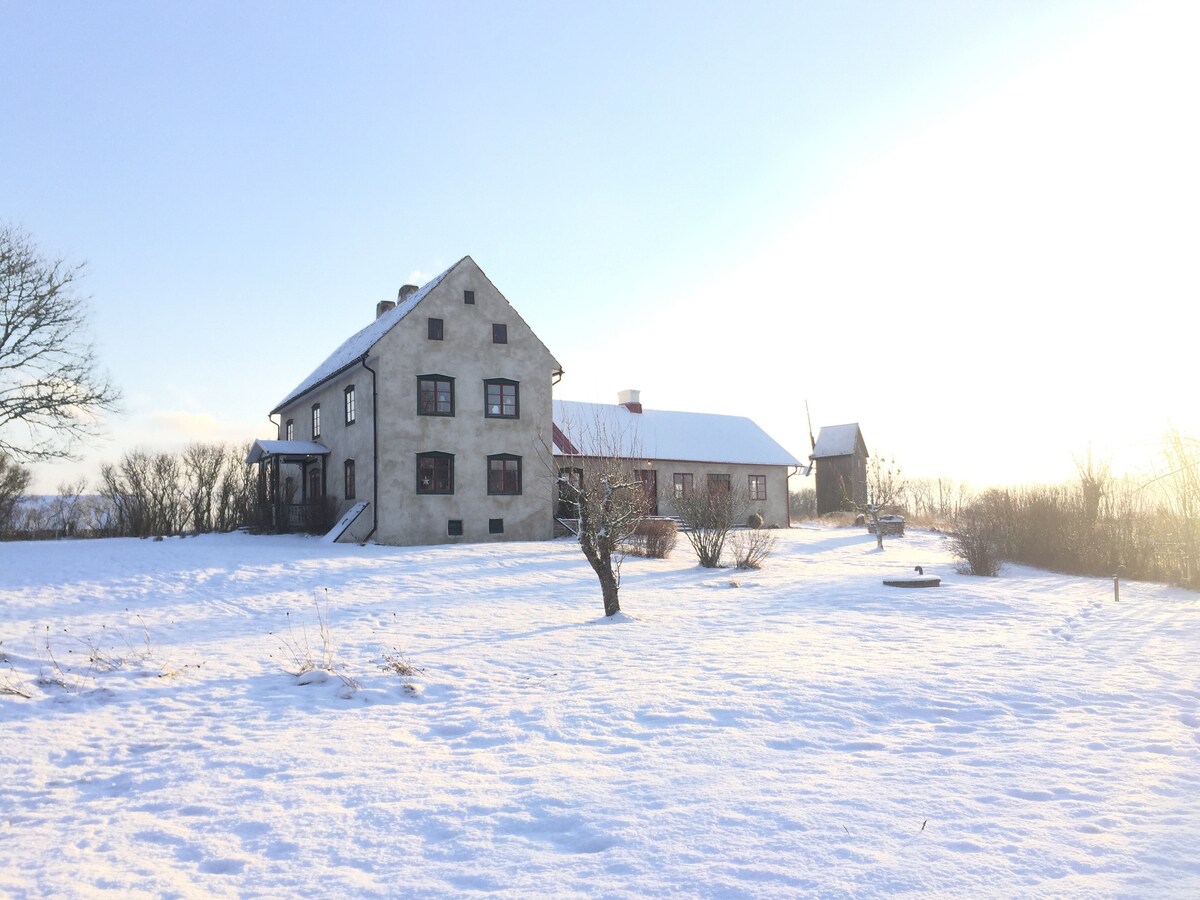 Welcome to our charming farm in Guldrupe. The perfect starting point for those who want to stay in the countryside away from the hustle and bustle and instead explore all of Gotland's beaches and parishes. Our farmhouse is carefully refurbished to retain its rustic charm while offering modern amenities for full relaxation. The front lush garden you share with us as a host family. At the back of the farmhouse instead, there is a completely private terrace for both sun and shade.