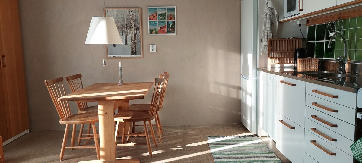 Welcome to our guest house! The guest house has been renovated into a modern house with an open plan. Perfect for the solo traveler looking to stay secluded or for the golf group looking to stay comfortably. There is a bed on the lower floor in a separate room with a door. On the upper floor, there are four beds in an open plan (no doors). The parking space is shared with the property owner, but there is room for more cars if needed. (Charging box available). We welcome you after 5 pm or by arrangement.