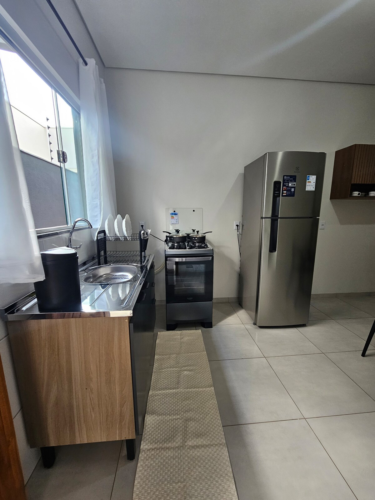 Bem-vindo! Nosso apê é aconchegante, moderno e cheio de luz😍 São 2 quartos: ❄️ Um com ar-condicionado para noites fresquinhas 🌬️ Outro com ventilador pra manter o clima agradável A cozinha é equipada com geladeira, fogão e utensílios 🍳 - ideal pra preparar suas refeições. A sala é ampla, com decoração clean e iluminada ✨, além de um espaço charmoso para refeições ou trabalho 💻🍽️ E ainda conta com lavanderia com máquina de lavar 🧺 Perfeito para sua estadia, com conforto e tranquilidade!