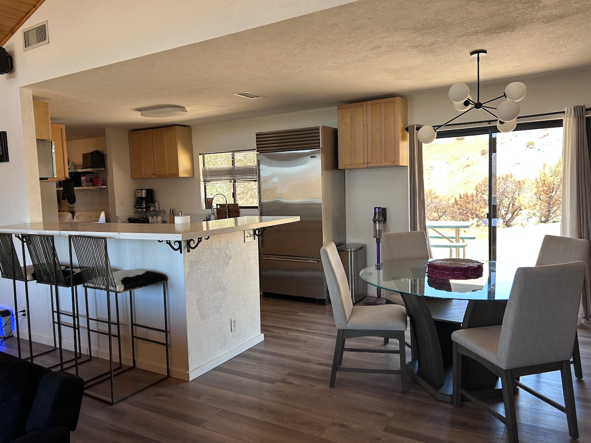 Moonpine Kernville is a stunning, clean, luxurious, retreat in the southern Sierra Nevada’s. Less than 1 mile to town. Beautiful mountain and valley views throughout the house and yard. Massive master bedroom, with vaulted ceilings, and large windows, with a private workspace. New central ac and heat! Fully stocked large kitchen. Fast Wifi 300mbps! The yard has a beautiful, new concrete landscape and is a great place to relax and enjoy the NEW gazebo on the couches and take in the amazing views!
