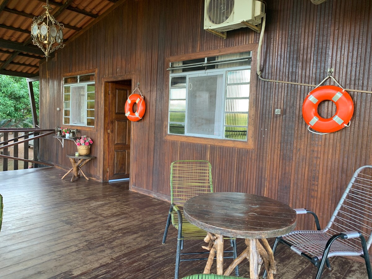 Terraced country house in the middle of the city, ventilated, surrounded by orchard, garden, swings, pond with carp, deck, table in the tree, medicinal garden. Quiet and safe accommodation for those seeking a comfortable stay for work and rest, with internet access, TV room, large kitchen and dining room, home office space and private bathroom. A true viewpoint for the city and Rio Xingu and its islands.