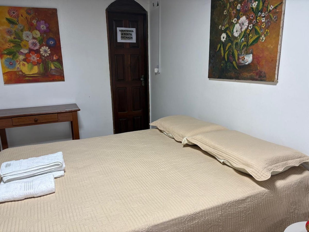 Um quarto simples, acolhedor e preparado com carinho para receber você. O quarto é climatizado com ar-condicionado, organizado e pensado para proporcionar descanso e tranquilidade, como estar em casa. A casa possui um ambiente familiar, silencioso e respeitoso, com acesso à cozinha e à sala compartilhadas. Localizado próximo ao centro, restaurantes, academias e lavanderias, é ideal para quem busca praticidade, conforto e uma estadia leve em Altamira.