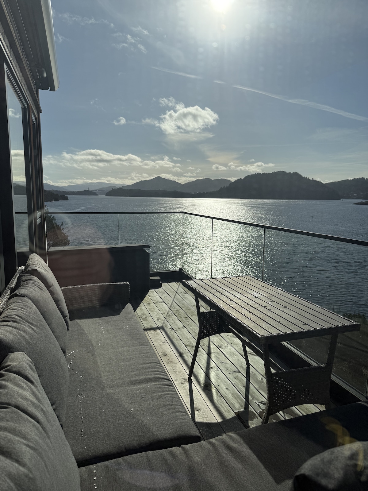Recharge your batteries at this unique and quiet accommodation. Enjoy the sea view either at the kitchen table, living room table, in the outdoor living room or in one of the garden's beautiful outdoor areas. Light the fireplace that is continuous from kitchen to living room, or take a nice bath in the old-fashioned bathtub with lion feet. The house is located in a peaceful neighborhood, while it is central. Only 30 minutes drive to Bergen, and 10 minutes drive to Knarvik center. Walking distance to the nearest Kiwi store.