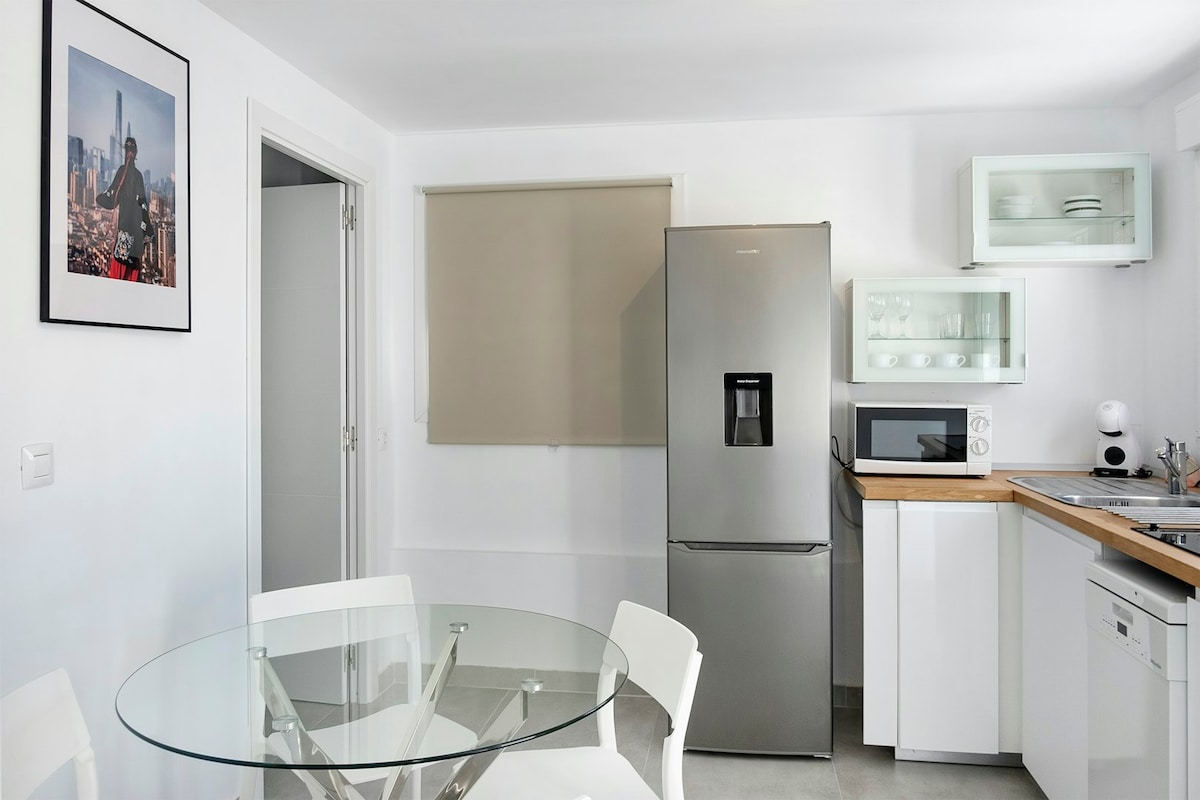 Relax in our recently renovated apartment with stunning ocean views from two terraces just 150 meters from the ocean. Our cozy one-bedroom apartment features a comfortable king-size bed and modern amenities for a pleasant stay. We're committed to sustainability, providing natural and eco-friendly cleaning and personal care products for your convenience. Families with babies are warmly welcomed! Take a leisurely stroll along the new coastal pathway or just relax and enjoy the community pool!