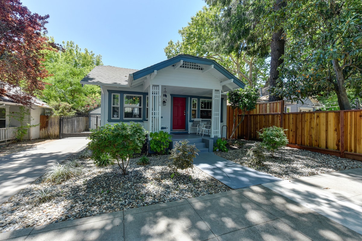 Hendricks House is an aesthetic masterpiece in the heart of East Sacramento. Tree-lined streets and beautiful architecture make for delightful walks to cafes and coffee shops. Our home was built in 2020 and offers the best of old world design with all the modern amenities. Close to three regional hospitals, CSUS and the state Capitol. Two bedrooms, a fully stocked kitchen, washer/dryer, gas fireplace and on-site parking make it perfect for a family, a romantic getaway or business trip. Max=4