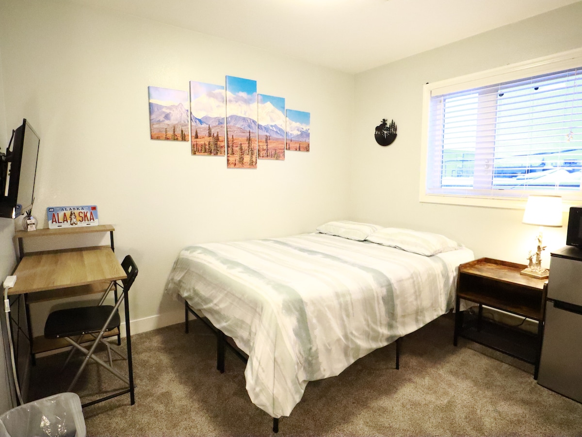 Enjoy a weekend in Girdwood with parking right in front of your private entrance to a spacious Arctic entryway. Plenty of room for ski/ snowboard/ winter gear. Unwind in the master bathroom complete with a free standing tub and walk in shower. Relax in your private room with beautiful views of some of girdwood valley’s beautiful mountains.