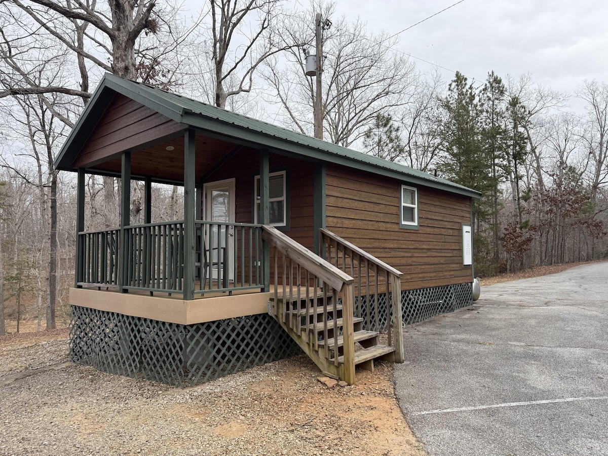 Welcome to Golden Daze, our lakefront cabin! Mornings are best spent enjoying the sunrise from the private floating dock or drinking hot coffee from the screened in porch. Keep your boat in our covered dock, make use of our provided kayaks, and unwind at night with a board game or movie. One master bedroom, one bedroom with bunk beds and full size bed, and one full bathroom. Wi-Fi internet, Smart/YouTube TV, Fully Stocked Kitchen, 15 minutes to Hartwell. 1 Mile to Boat Ramp!