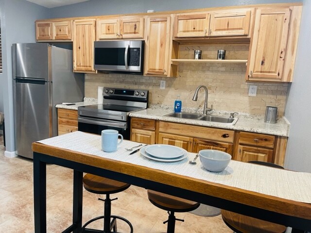 Near Ector County Coliseum and 2 major roads in Odessa: Andrews Hwy and 42nd street. Near Dos Amigos bar and Grill for food/drinks after work and easy access to restaurants, mall, grocery, shopping centers, gas stations all on 42nd st. Completed in April 2025 with everything new. -Full size 12" memory foam mattress, -50" amazon fire smart TV, -10 cu ft refrigerator, -1000W microwave, -Tempered glass cooktop, -4-set dishware, silverware, & a cookware set -R.O. water available in laundry room