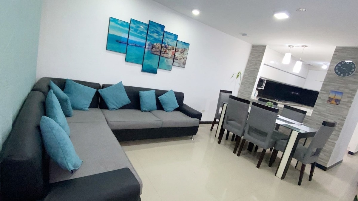 You will enjoy a very CENTRAL apartment located in the best sector of the city of Atuntaqui. It is 120m2, has 2 bedrooms with beds for 2 people, 2 and a half bathrooms, smart televisions with Netflix in each room and living room, a magnificent view of the Imbabura volcano. In this location you will have easy access to the main roads, tourist places, restaurants, bakery, greengrocer, taxis and completely safe.