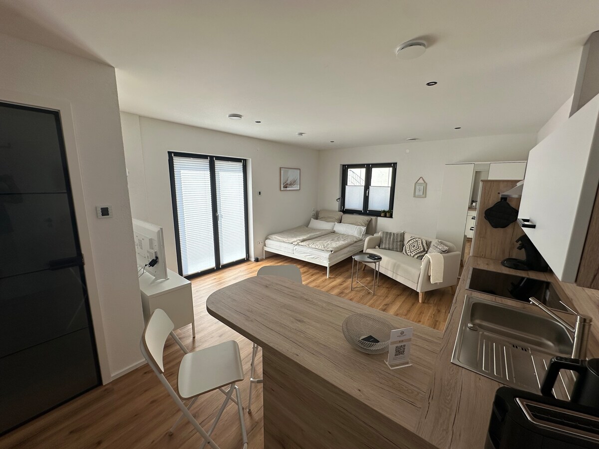 Welcome to the "horseradish nest" in the horseradish village of Urloffen! Our cozy new basement apartment offers a spacious room with a bedroom, small couch, fully equipped kitchenette and dining area. The modern bathroom provides extra comfort. Outside, a private terrace with a small dining area awaits. A free, reserved parking space is available on the premises. Linens and towels are included in the price.