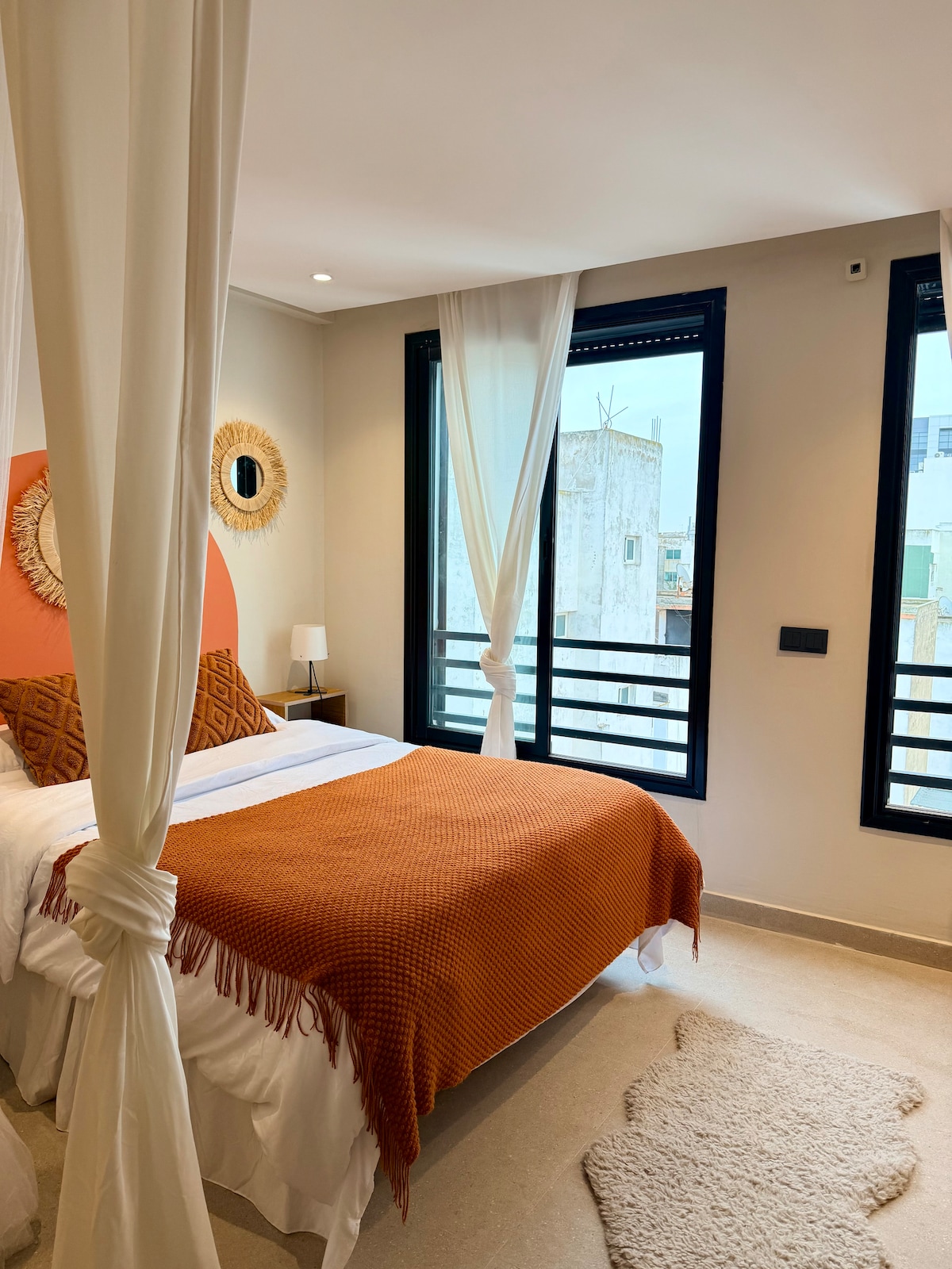 Some apartments are where you set down your bags. Others are where you set down your soul. This hidden Gem is the second. Nestled in the heart of Casablanca’s most vibrant neighborhood — this apartment was designed as an object of desire: an emerald green zellige arch, a raw solid wood coffee table, handcrafted pottery, a blush-beige sofa, and that light that fills every corner. The Morocco you’ve been dreaming of, in contemporary design. Boulevard Zerktouni, steps from the Twin Towers.