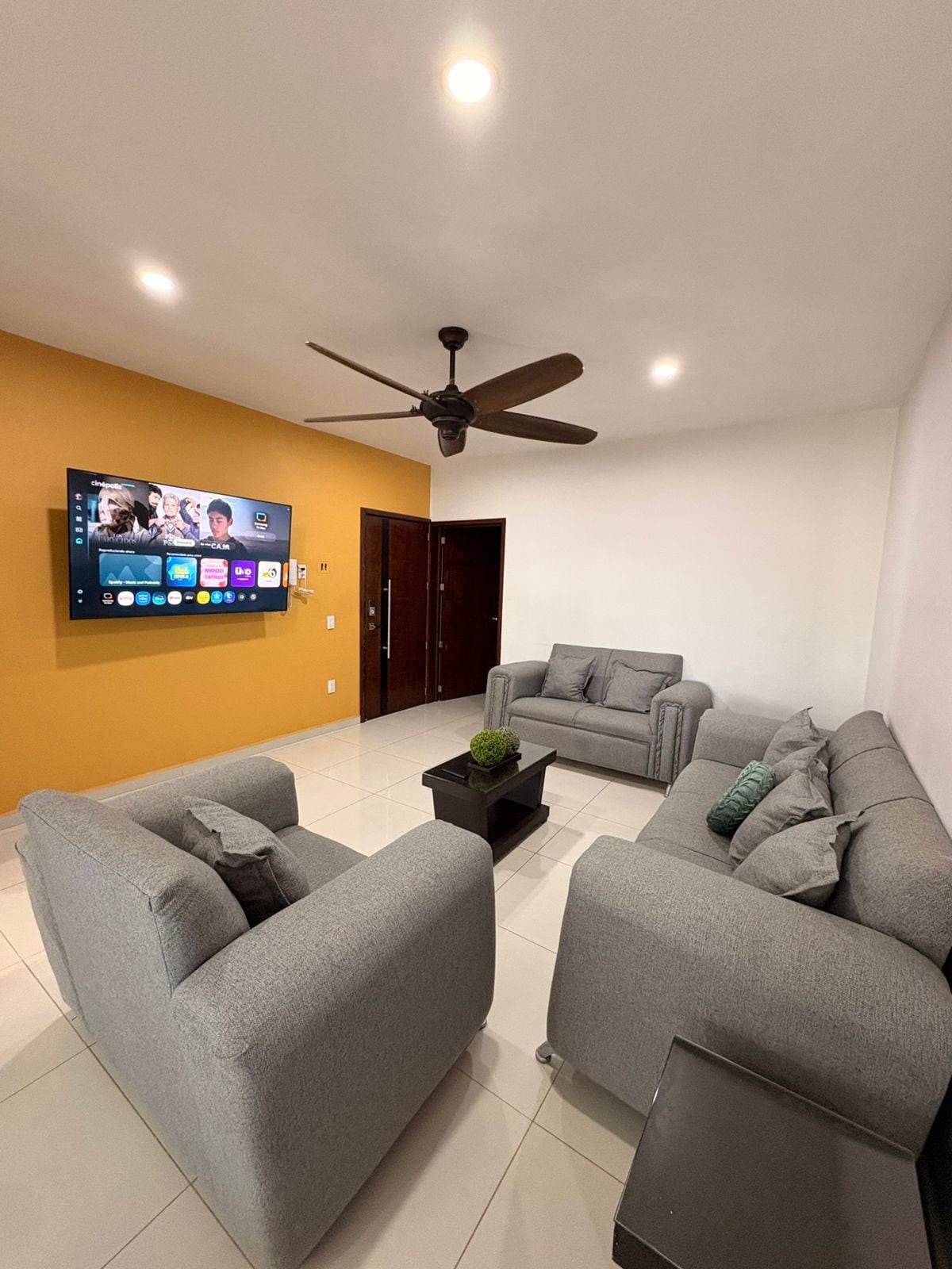 Located just an 8-minute walk from downtown Arandas, it has 2 bedrooms: Main bedroom with a king size bed, Second bedroom with 2 single beds, equipped with everything you need to rest comfortably; 1 full bathroom; Living room with a 65" screen with Cable TV; Internet; Dining room for 6 people; Fully equipped kitchen; Hot water; Ideal for families, couples or small groups looking for a comfortable stay, with everything you need to feel at home