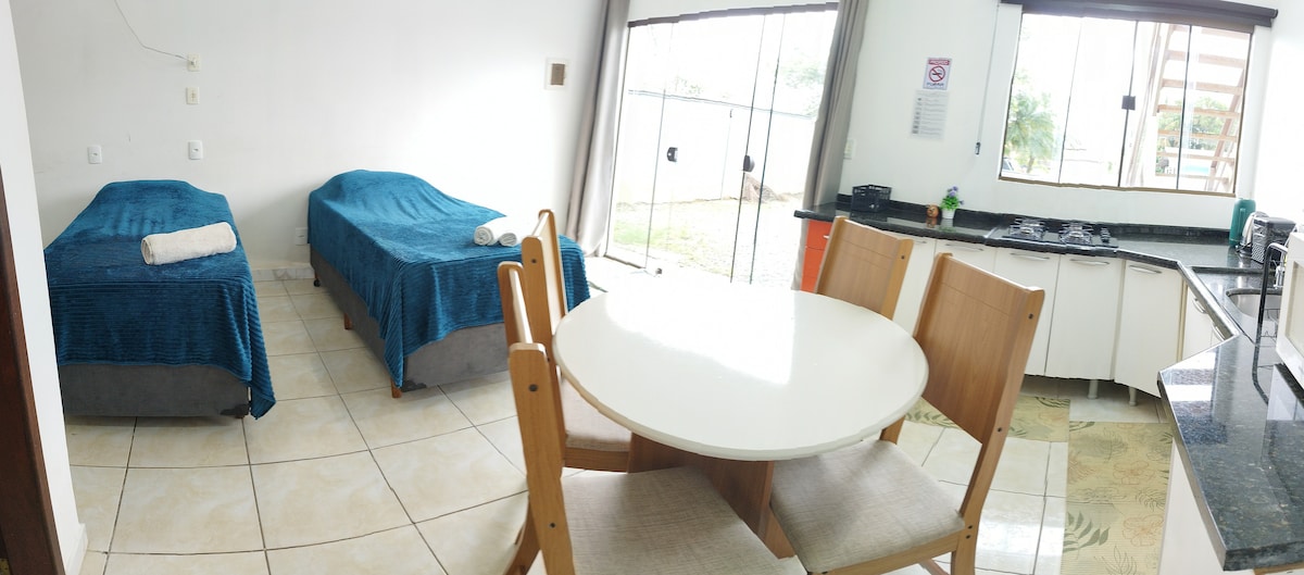 Studios Independentes & Aconchegantes São 4 unidades privativas e simples nos fundos da propriedade, garantindo silêncio e total autonomia longe da rua. Da porta para dentro, o espaço é 100% seu. Oferecemos amplo estacionamento exclusivo para hóspedes. Localização estratégica próxima à BR-101. Explore a natureza no Caminho das Águas e Cascata do Piraí, ou relaxe na GutBrau Cervejaria. Ideal para quem busca praticidade, segurança e o essencial para uma ótima estadia. Reserve agora!