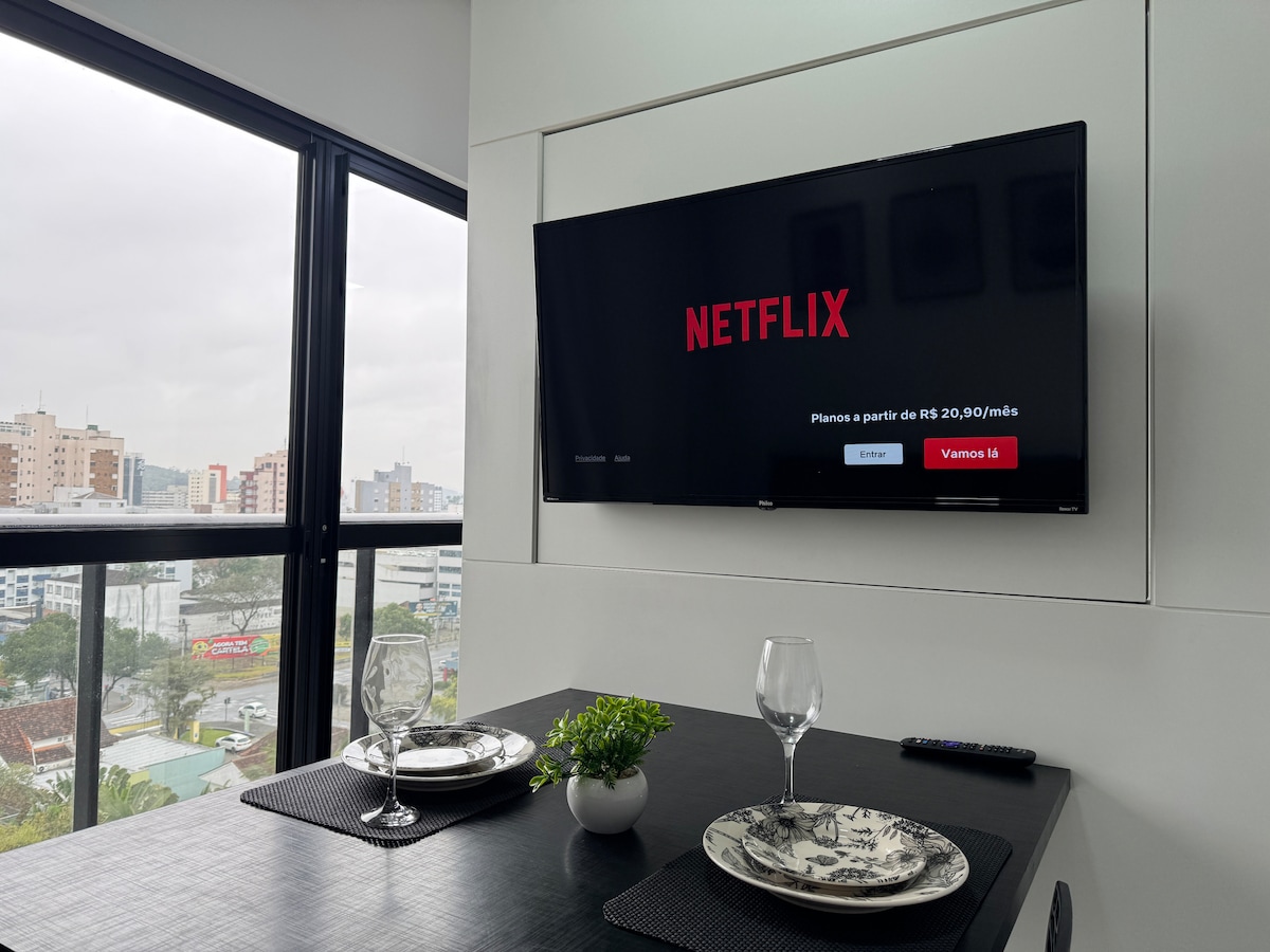 Studio aconchegante e bem equipado, ideal para duas pessoas, mas acomoda até 4 pessoas. Fácil acesso a BR101, rodoviária, pertinho do centro de Joinville e a poucos minutos da via gastronômica. - Ambiente moderno e funcional - Espaço para home office e WiFi de 600mb - Cozinha totalmente equipada - Equipado com lava e seca - Self-check-in prático e seguro